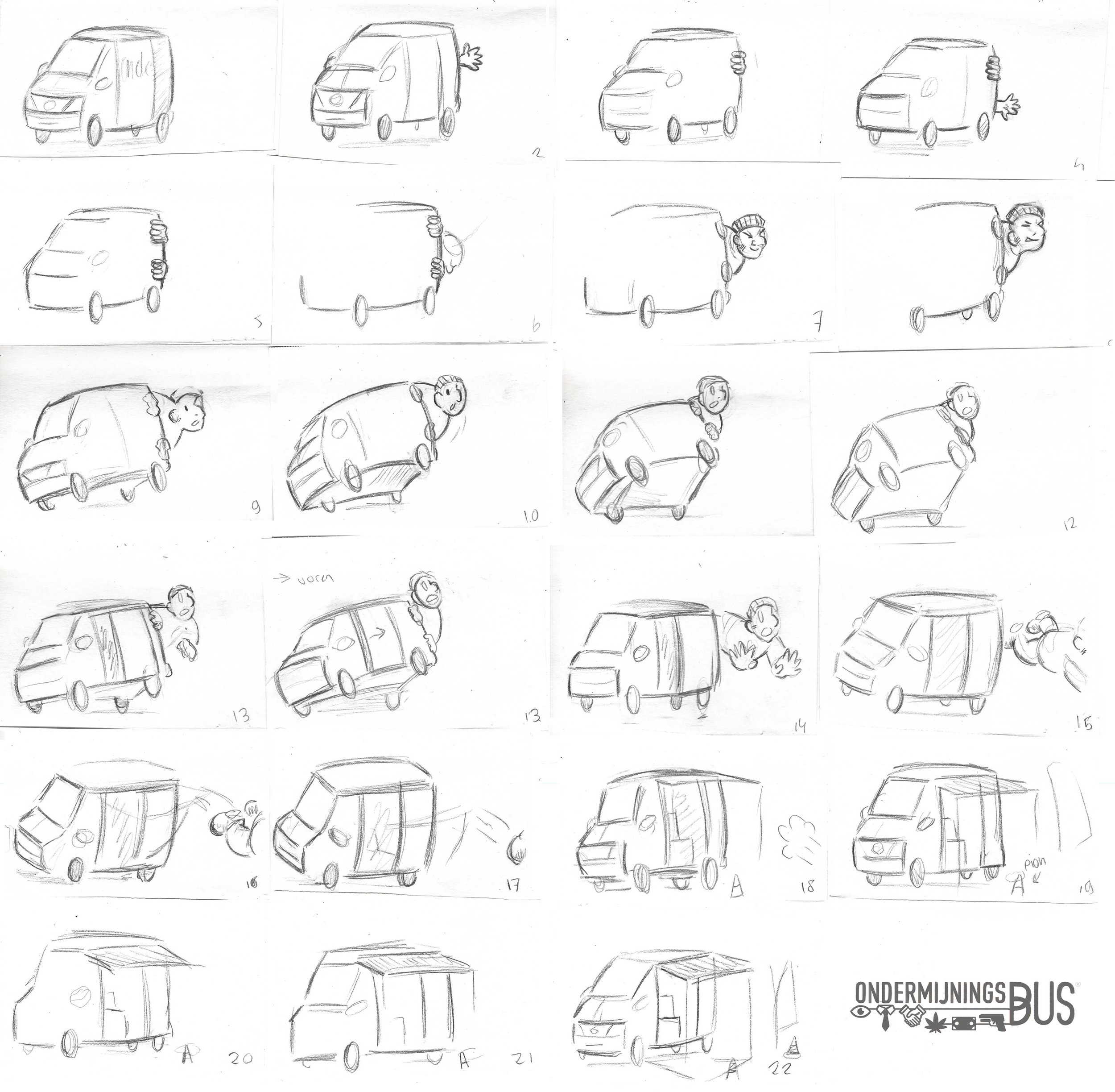 Flipboek animatie in schets (24 tekeningen).